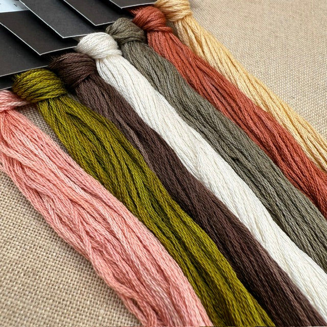 Floss colours included: Bellini, The Final Moss, Alder Ego, Betty White, Dirty Minds, The Occasion, Straw Hat