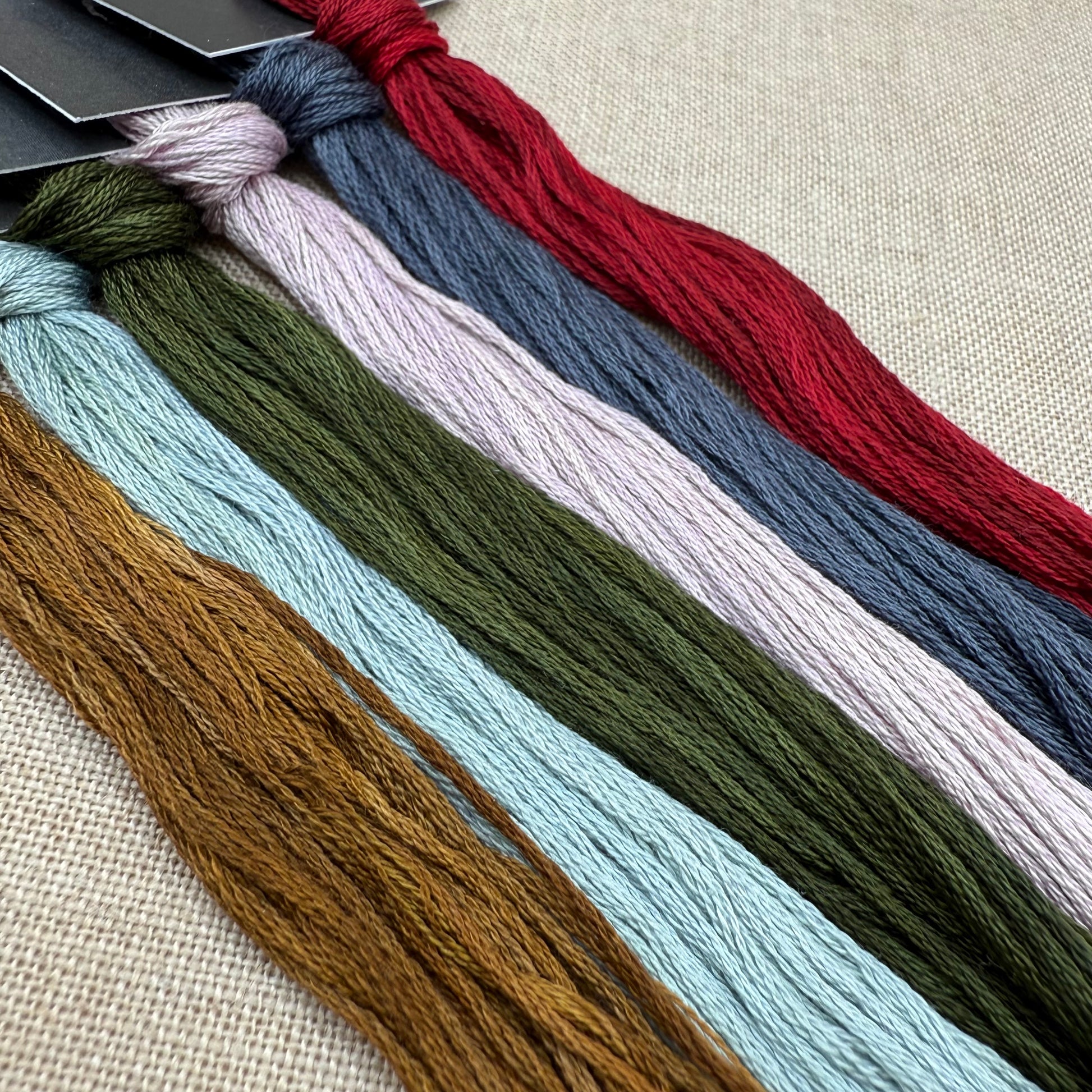 Floss colours included: Ochre, Cool Breeze, Spinach, Afternoon Tea, Lead It Be, Falu Red
