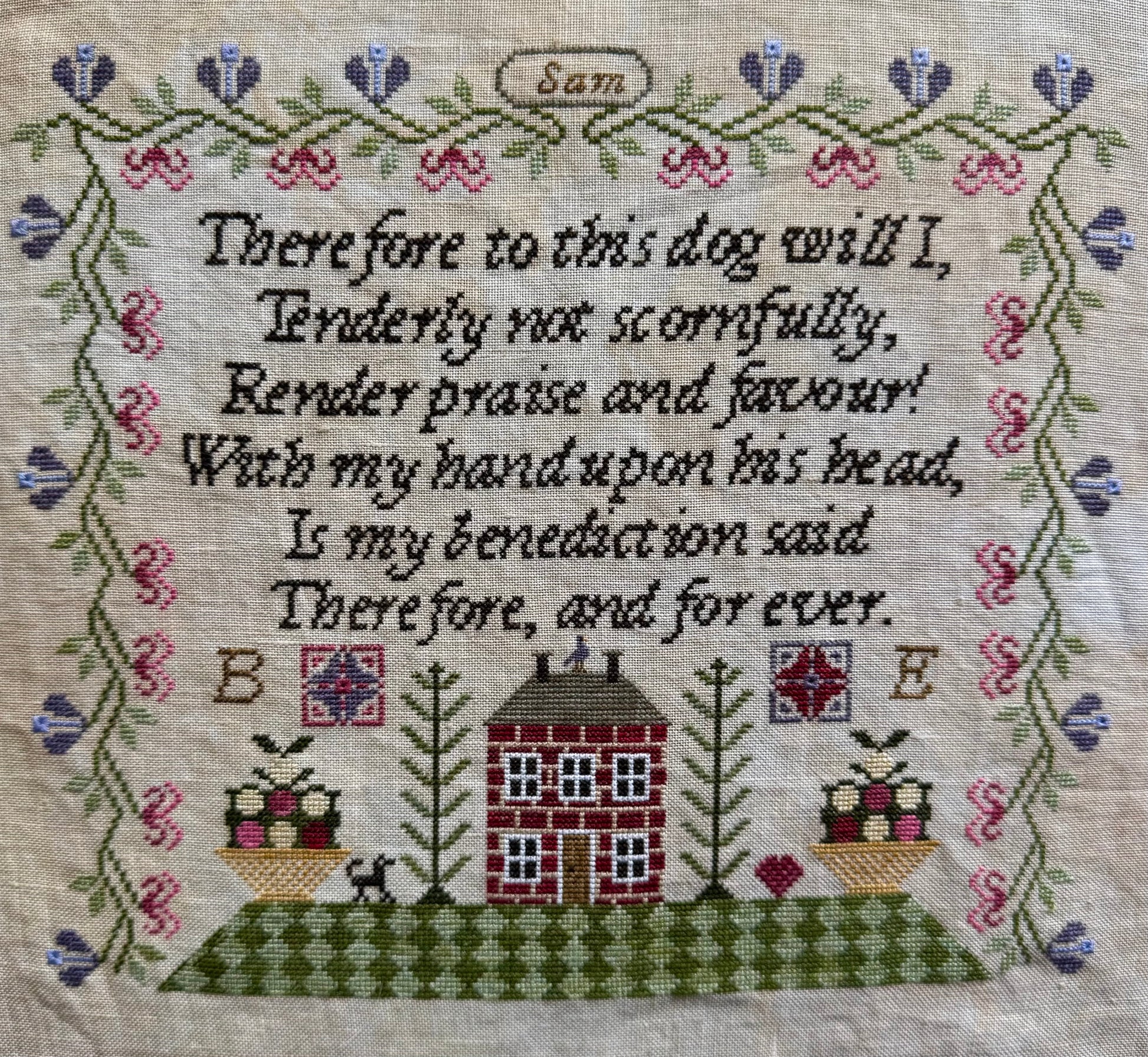 This item includes a physical booklet chart for Maximum Cross Stitch's "Ode to a Good Dog" with the option to add a pack of the called-for Roxy Floss Co colours.