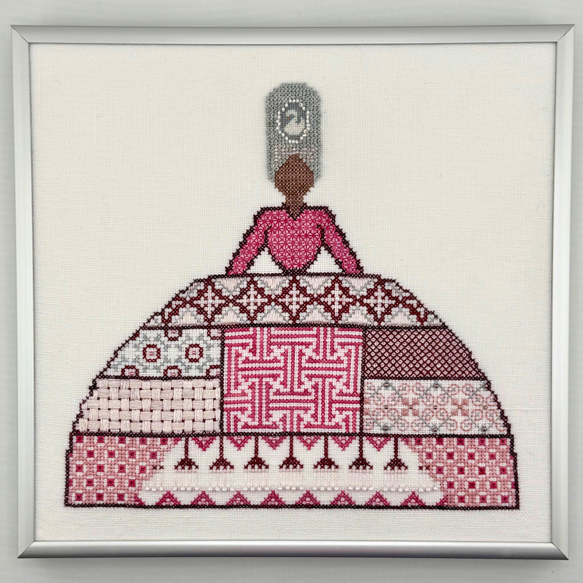 This item includes a physical booklet chart for Maximum Cross Stitch's "Queen Charlotte" and/or a pack of the called-for Roxy Floss Co threads.