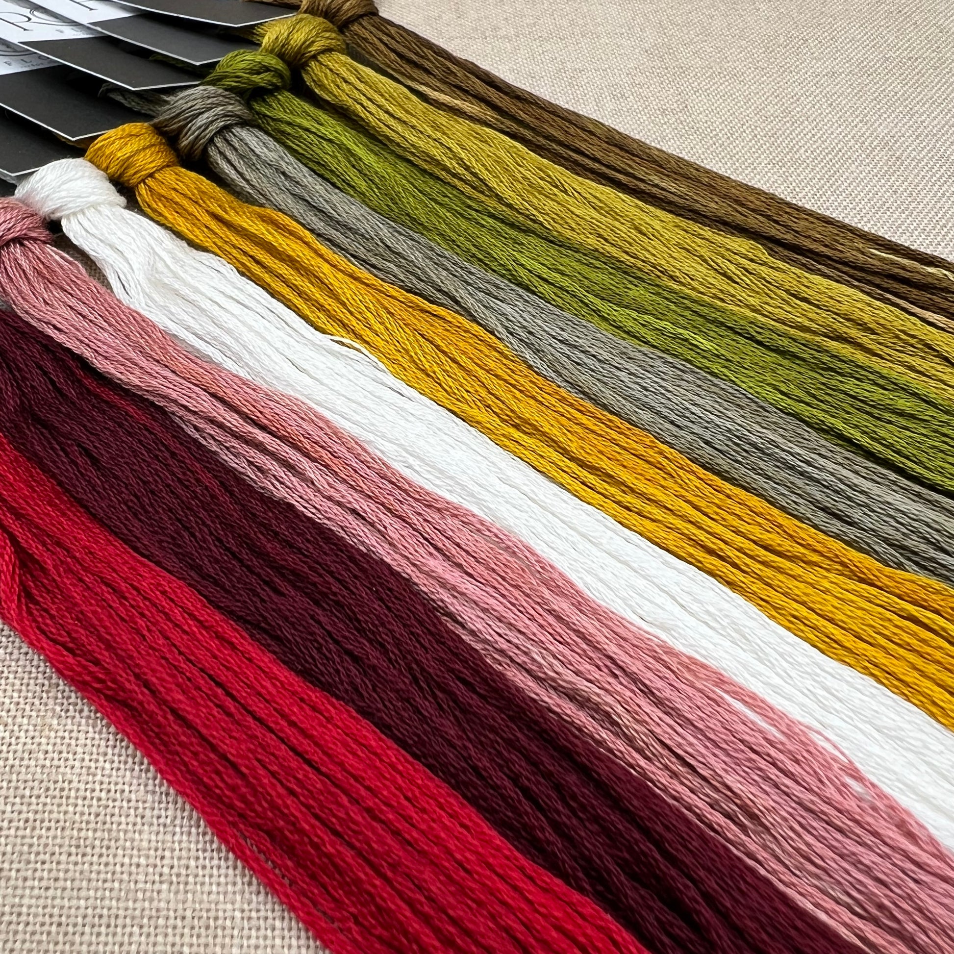 Floss colours included are: Lucille, Sommelier, Smoked Salmon, Legend-Dairy, Curry Powder, Dirty Minds, The Final Moss, Serpent, and Umber