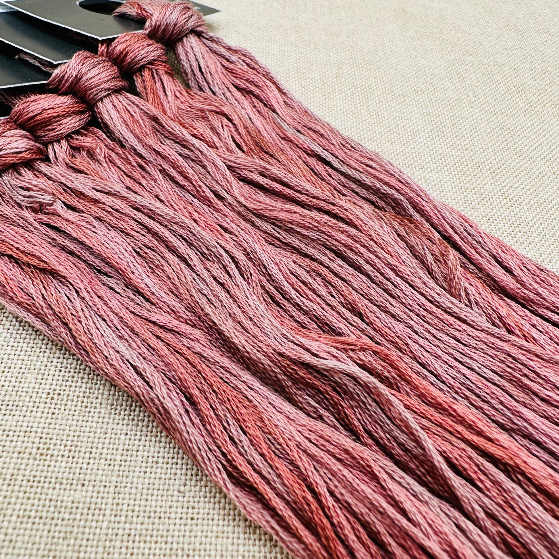 Overdyed by hand in small batches, this floss is awesome! Please ensure you are ordering the amount needed as duplicating dye lots is a tricky business and the next batch of this colourway may vary slightly.
