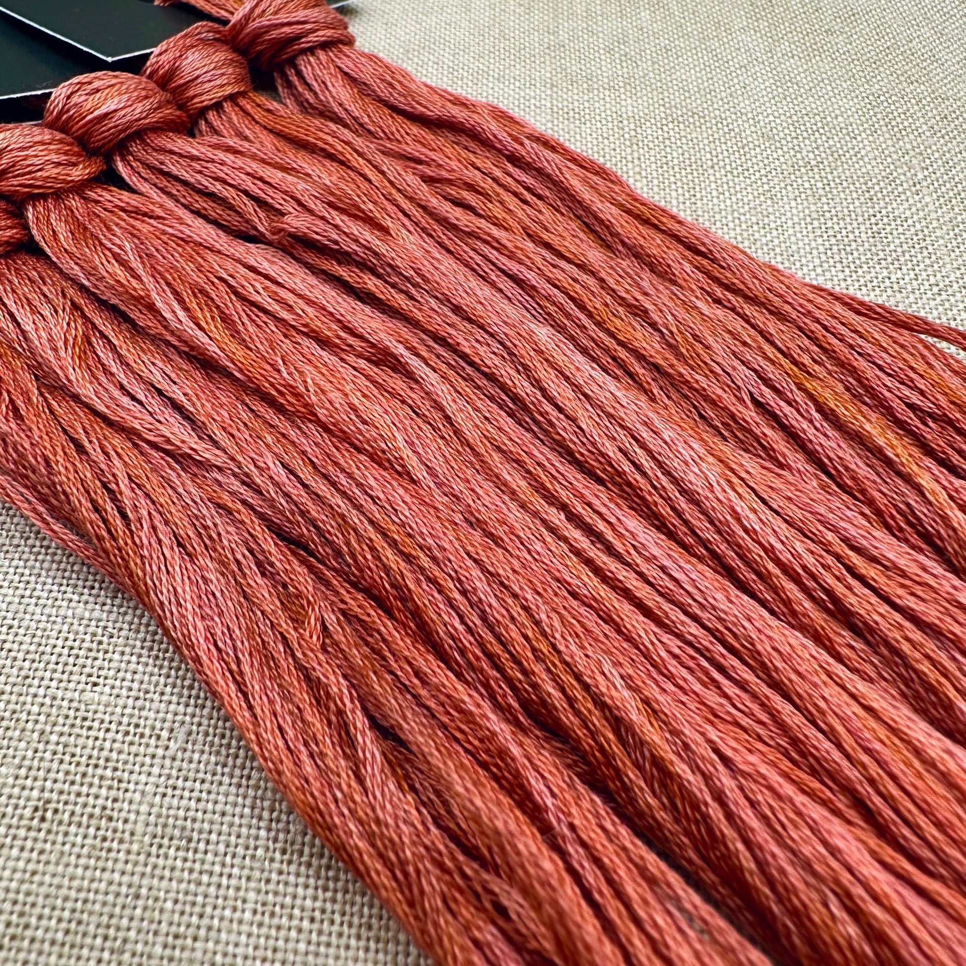 Overdyed by hand in small batches, this floss is awesome! Please ensure you are ordering the amount needed as duplicating dye lots is a tricky business and the next batch of this colourway may vary slightly.