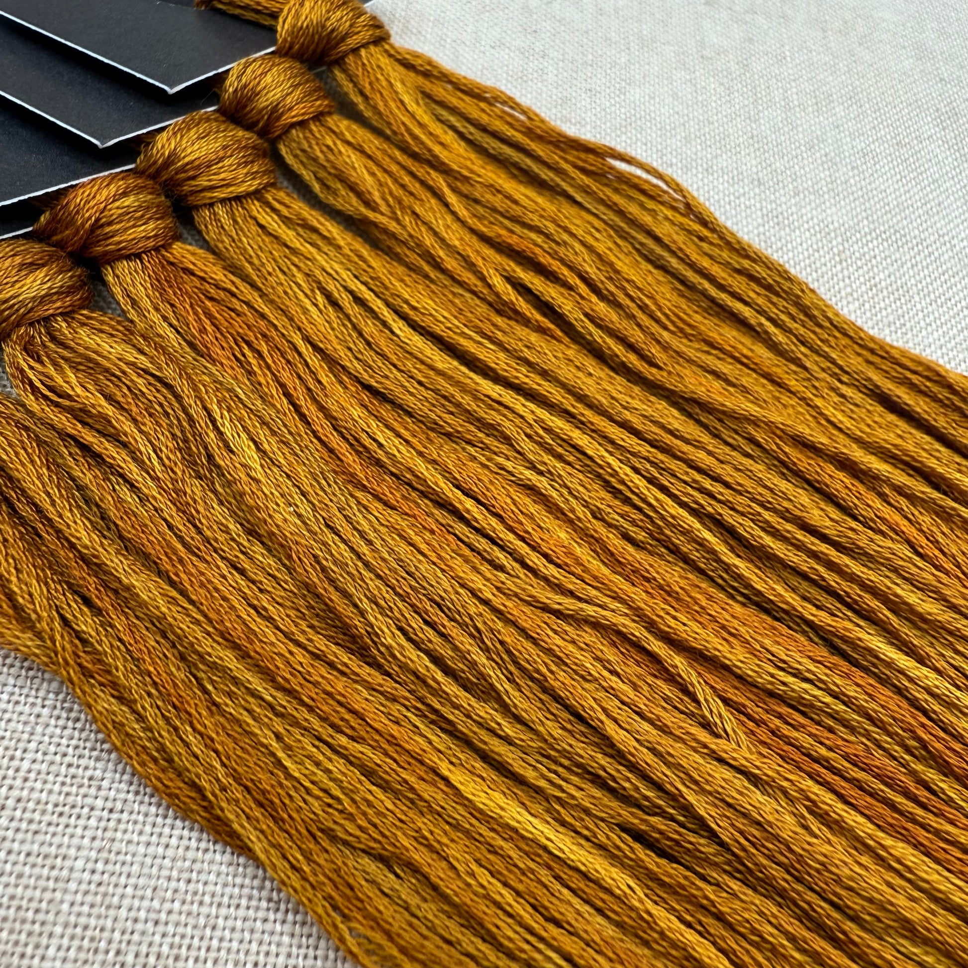 Overdyed by hand in small batches, this floss is awesome! Please ensure you are ordering the amount needed as duplicating dye lots is a tricky business and the next batch of this colourway may vary slightly.