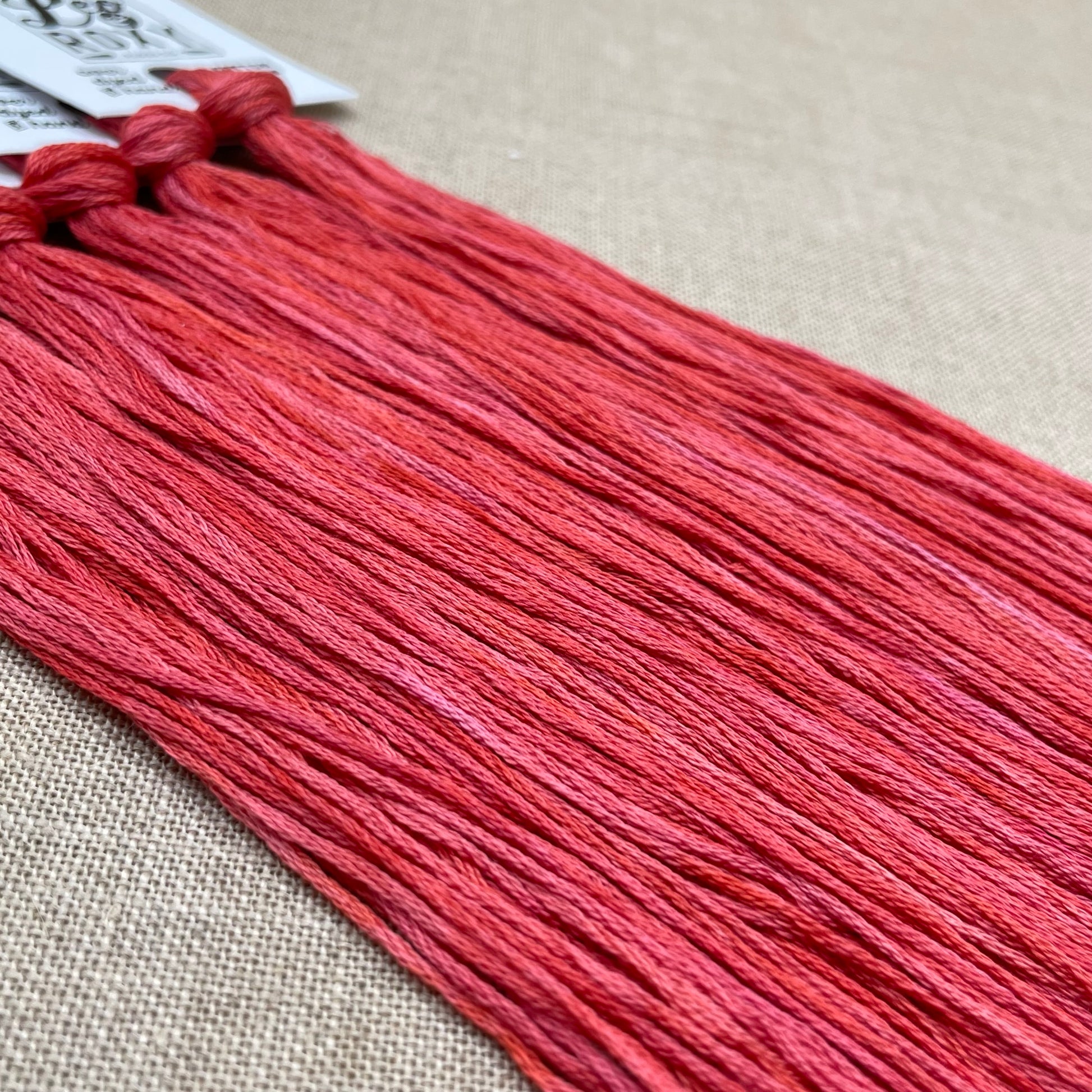 Overdyed by hand in small batches, this floss is awesome! Please ensure you are ordering the amount needed as duplicating dye lots is a tricky business and the next batch of this colourway may vary slightly.