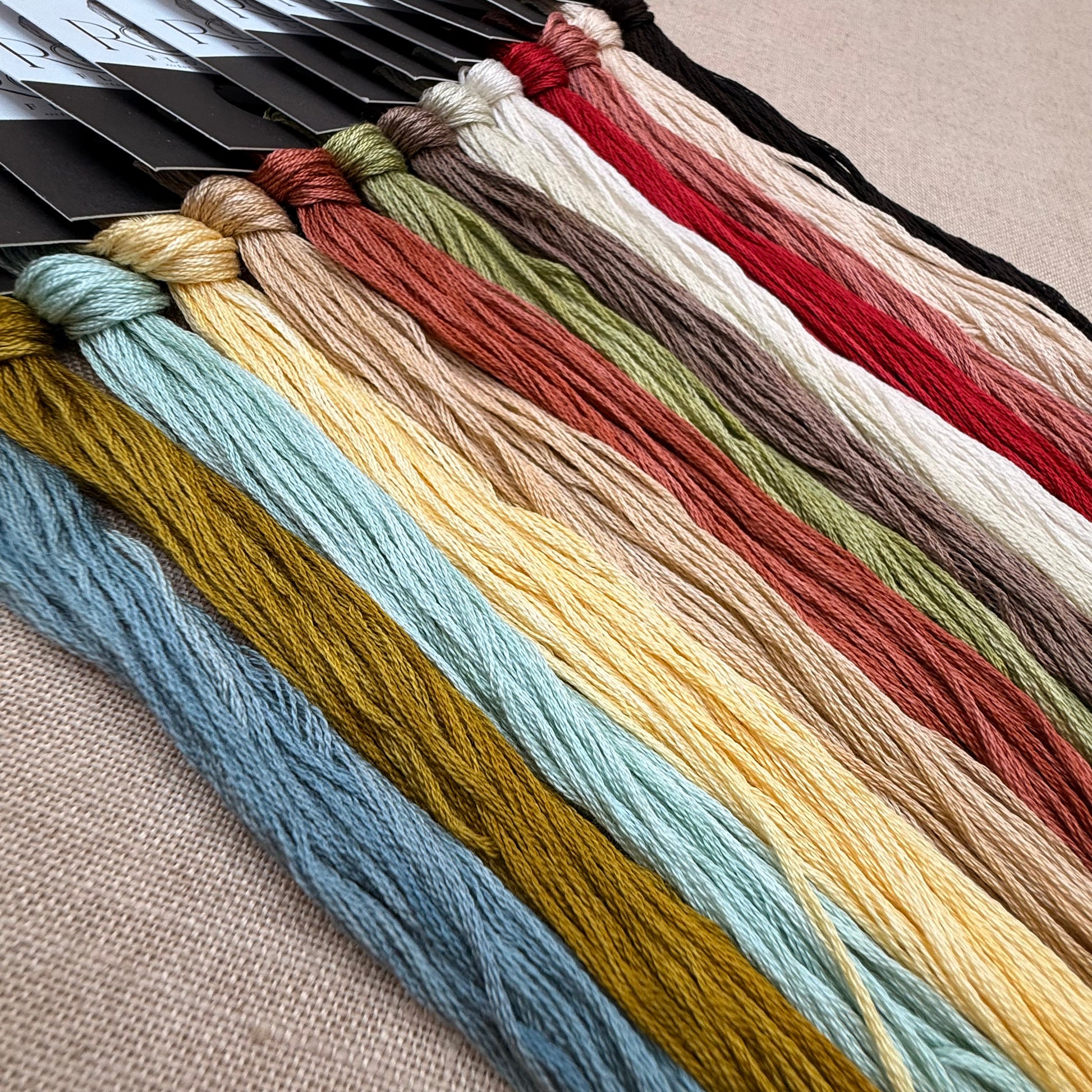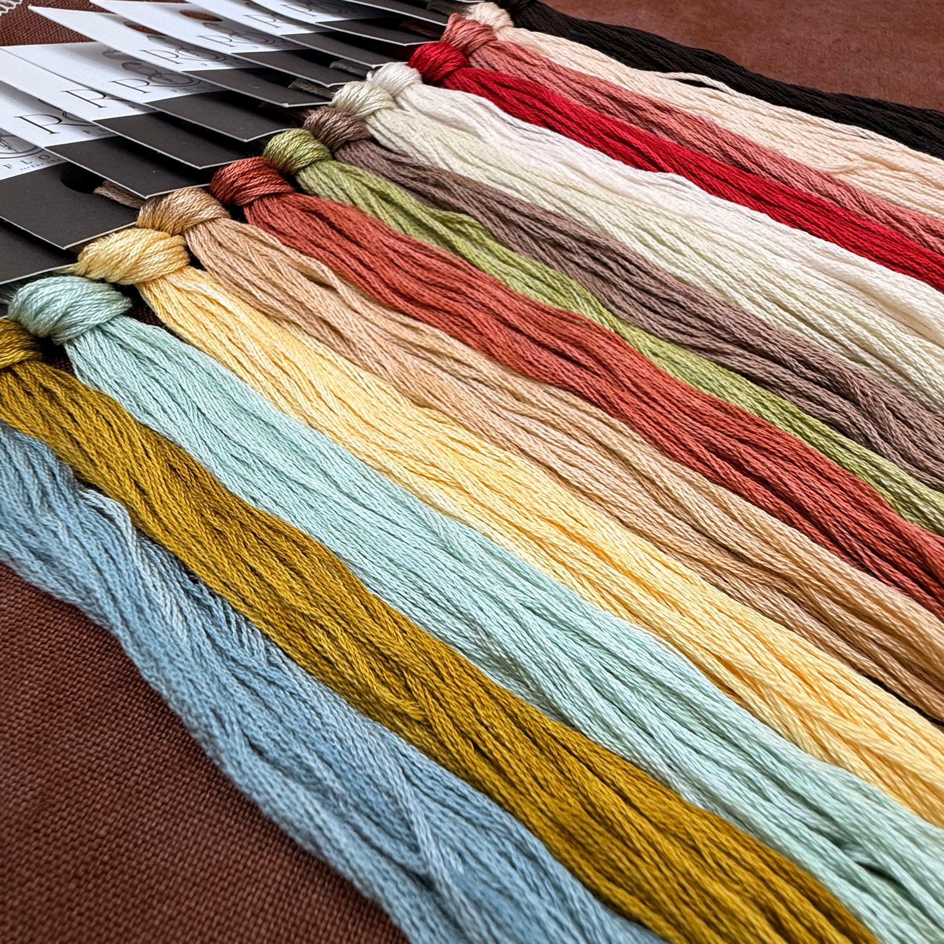 Floss colours included are: Gwyneth, Serpent, Zephyr, Chick, Cremini, The Occasion, Thorn This Way, Double Double, Brunette, French Vanilla, Betty White, Cheeky, Prima Donna, Champagne