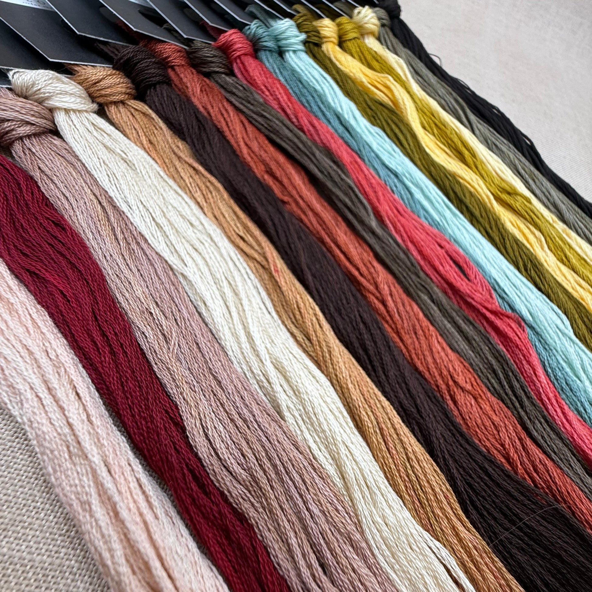 Floss colours included are: Moscato, Molly, Amaretto, Ember, Neut, Craisins, Muddy Trail, Espresso, Solitude, Myrtle, Zephyr, Yellow There, Chick, Whole Grain, Sergeant, Dirty Minds, Bakers Block
